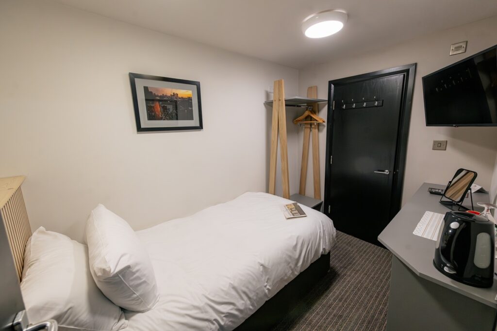 Ideal for the solo traveller, our single rooms offer a snug stay with a comfortable bed. This room features all the amenities you’ll need for a pleasant overnight stay in Manchester city centre, including a private bathroom, a shower, tea & coffee facilities and TV. All our rooms come with complimentary Wi-Fi.