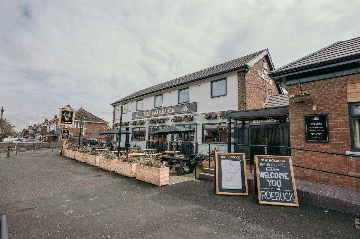 The pub, owned by the Joseph Holt brewery, was once known as Thornberries. When the Manchester-based company bought and refurbished the site, customers were asked what the pub should be called. Since it had originally been named The Roebuck when it was built in 1961, the answer was a resounding call to restore its historic name. Following a £1.5 million revamp, The Roebuck reopened with a full interior and exterior overhaul.