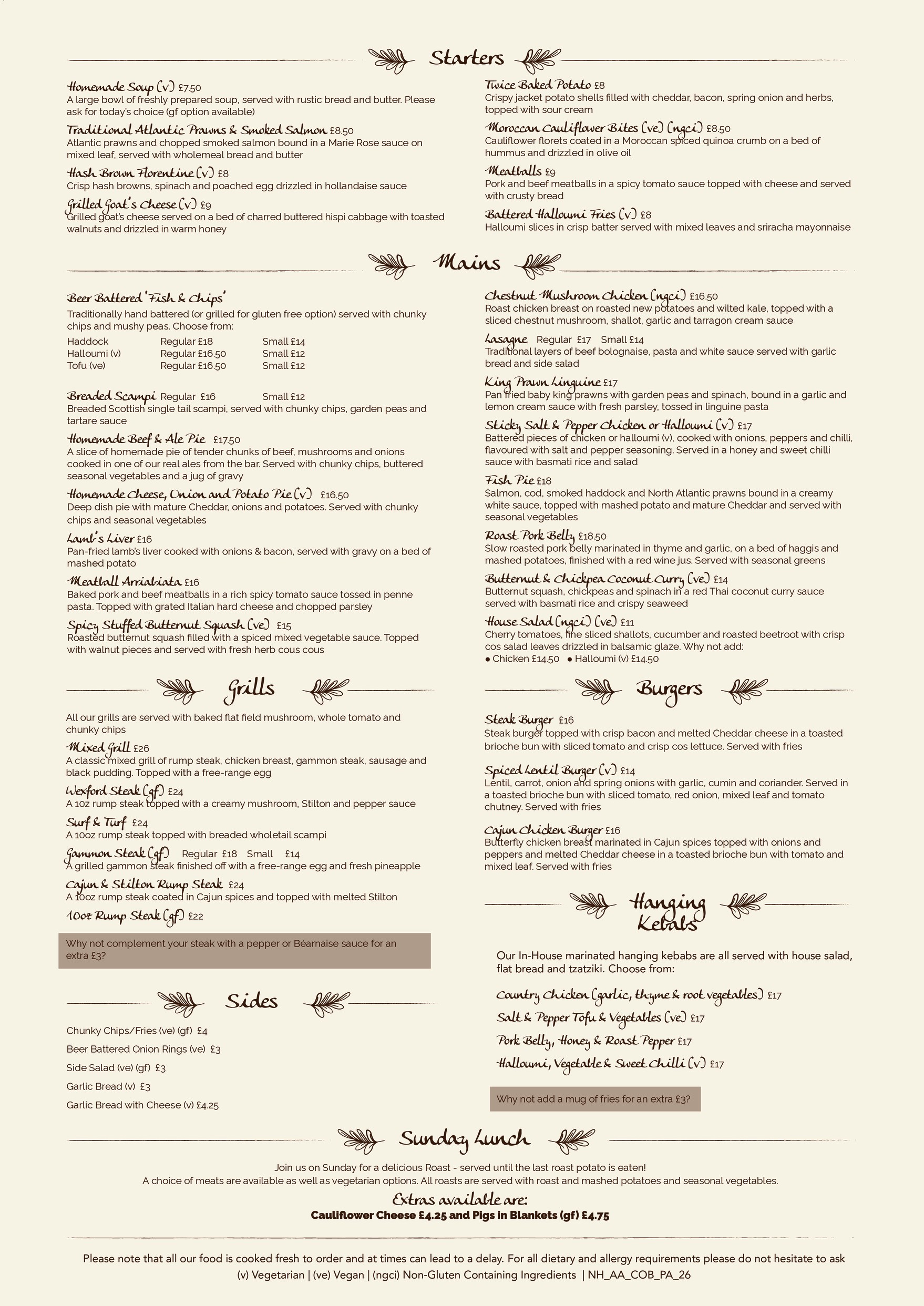 The pub is beautifully furnished throughout with cosy snugs, low beams, open fires and cobbled entrance. This wouldn’t be a proper country pub without a great beer garden and a dog friendly bar area.